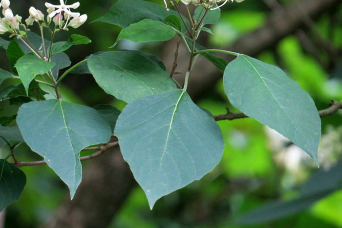 葉・・・葉は対生し、スペード形。両面に毛がある。葉柄は2~10cm。枝や葉には強い悪臭がある。